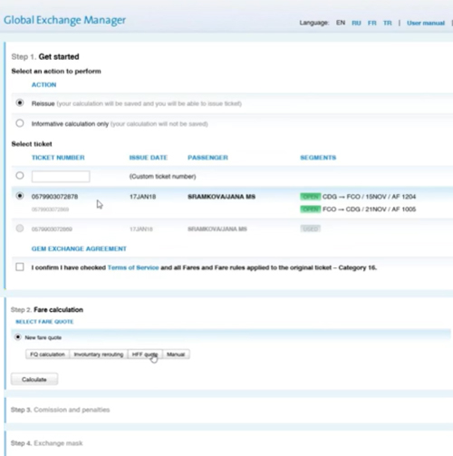 EM (Global Exchange Manager) and GRM (Global Refund Manager) are Smartpoint plugins that help you partially automate the process of ticket exchanges, reissues and refunds. They guide you through 6 (GEM) or 3 (GRM) easy steps in a graphical interface, so you don’t need to use cryptic entries. GEM & GRM make the whole process much quicker and more efficient. Moreover, you will spend less time on training your agents.